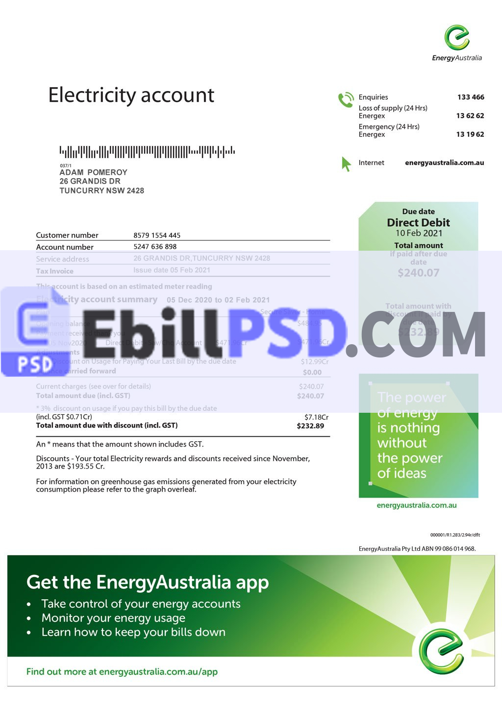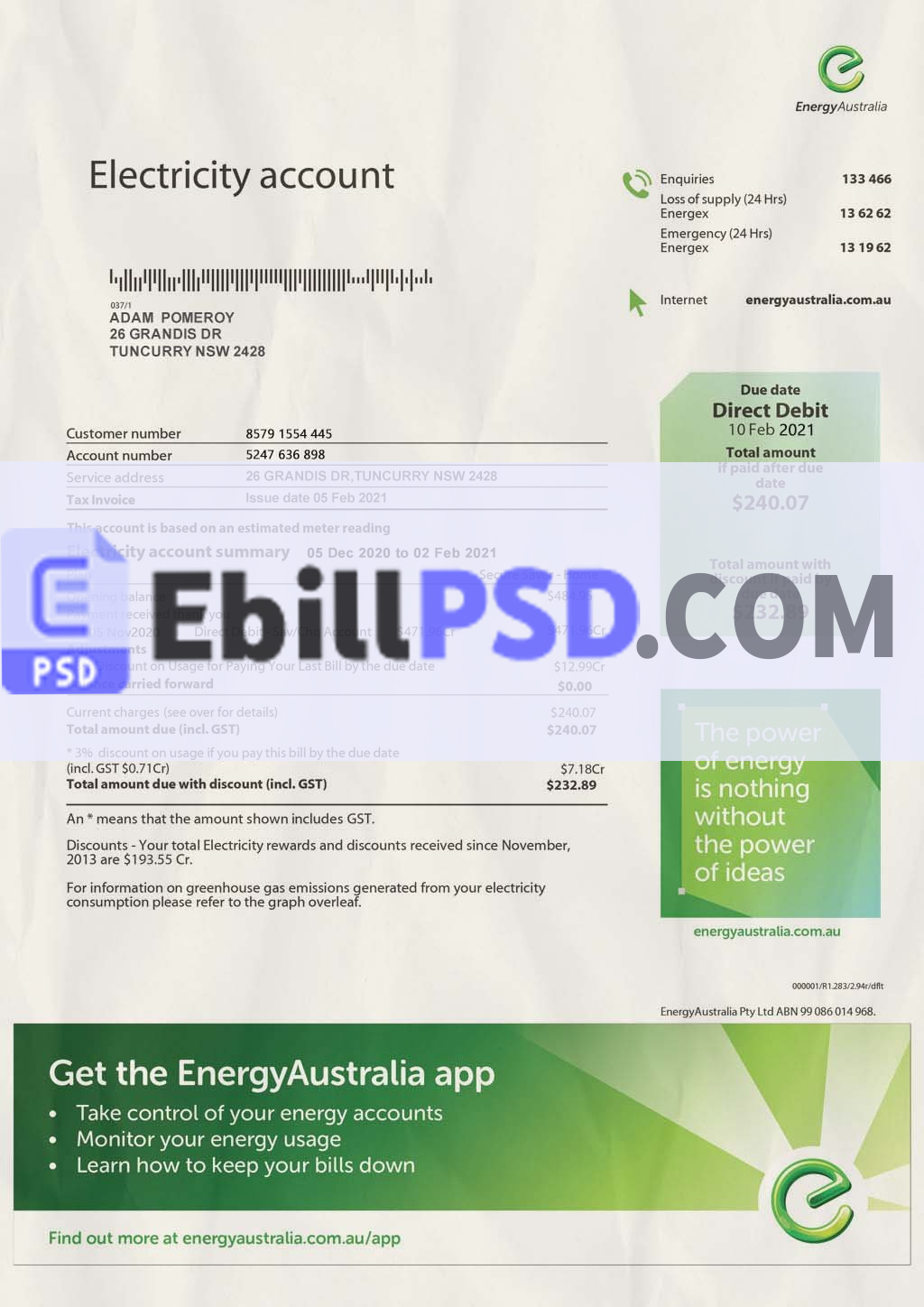 Energy Australia Electricity Bill PSD Template Download For Cheap Price