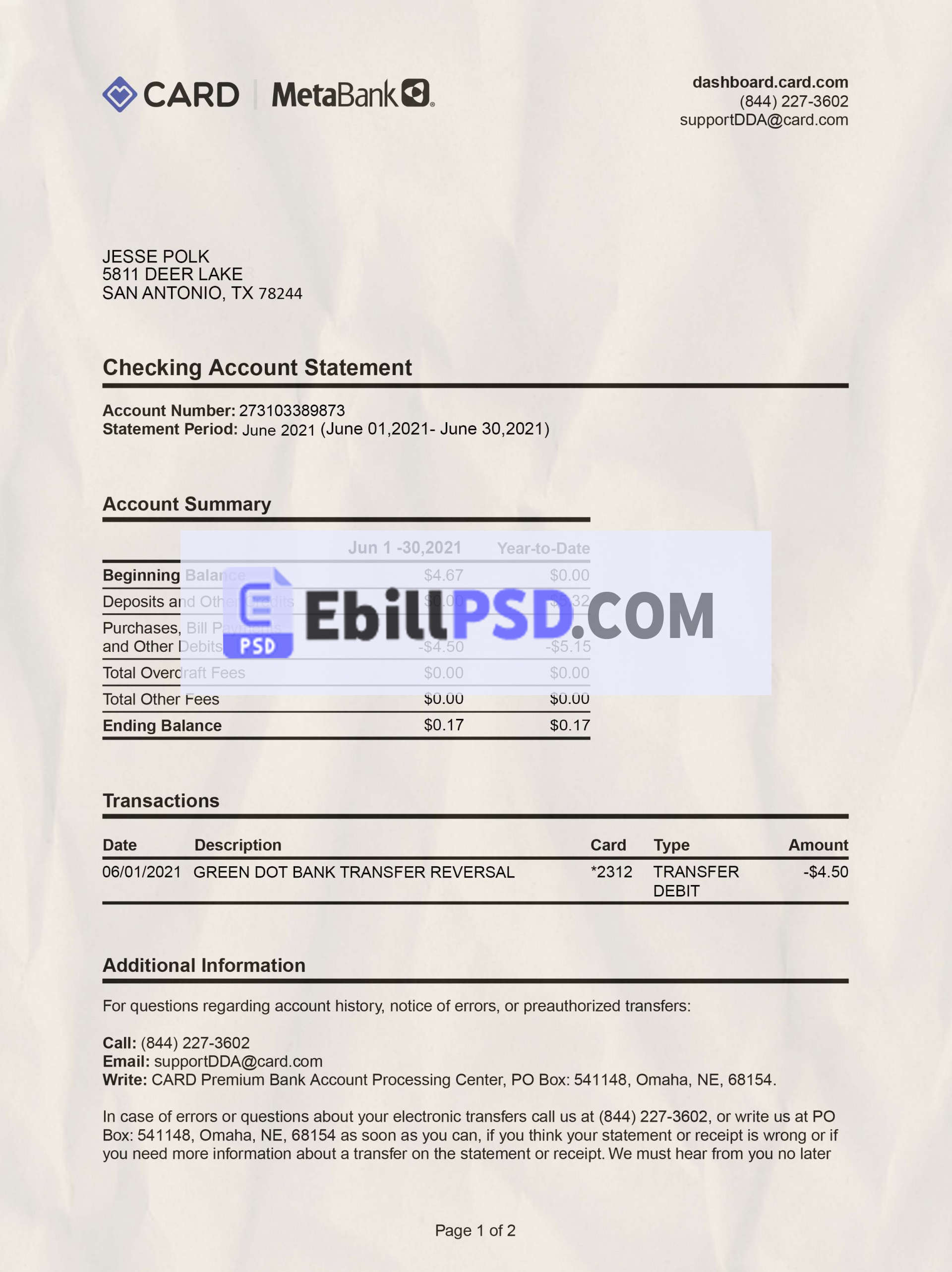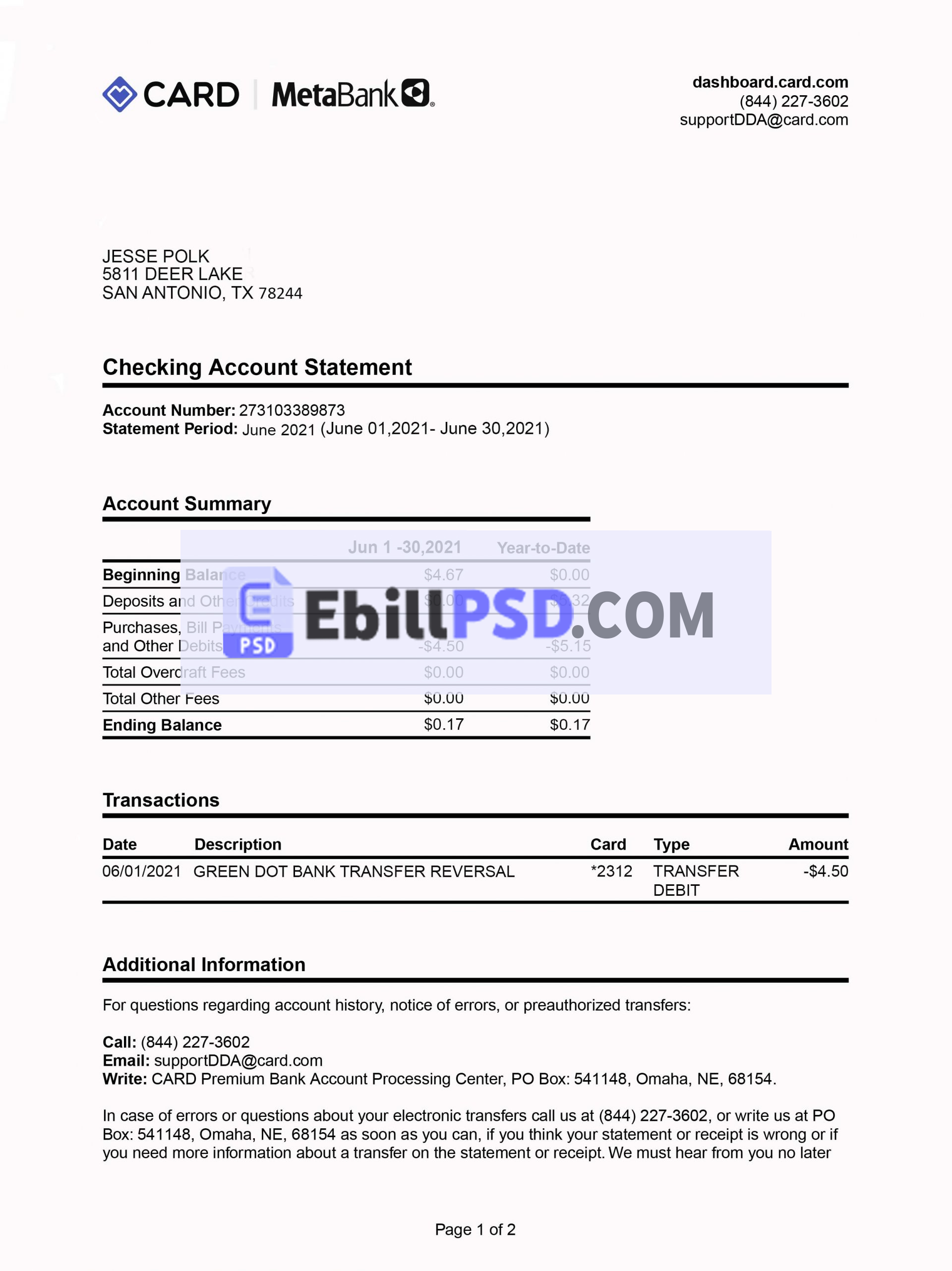 Card.com by Meta Bank Statement PSD Template Download For Cheap Price