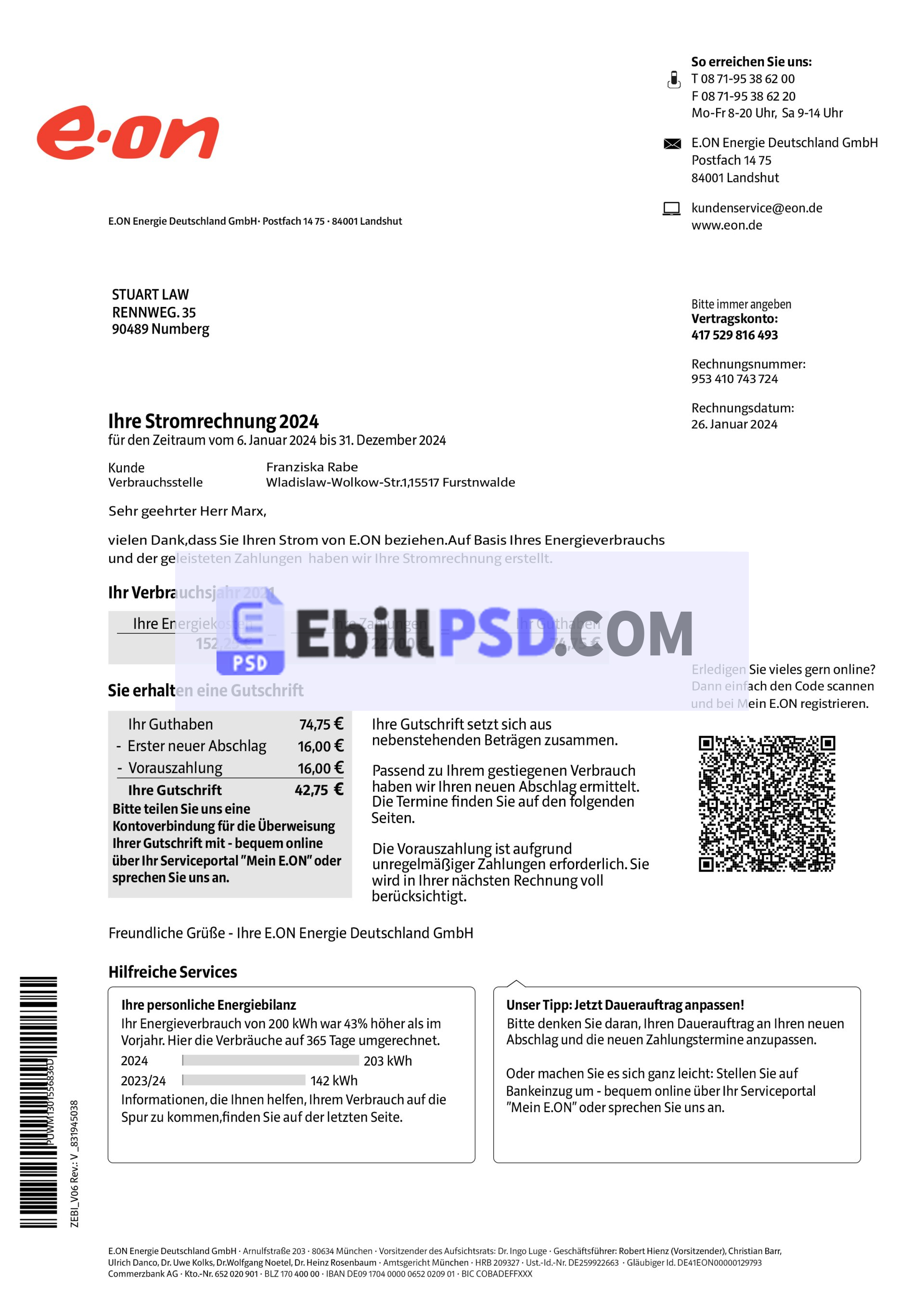 Germany EON Utility Bill PSD Template Download For Cheap Price