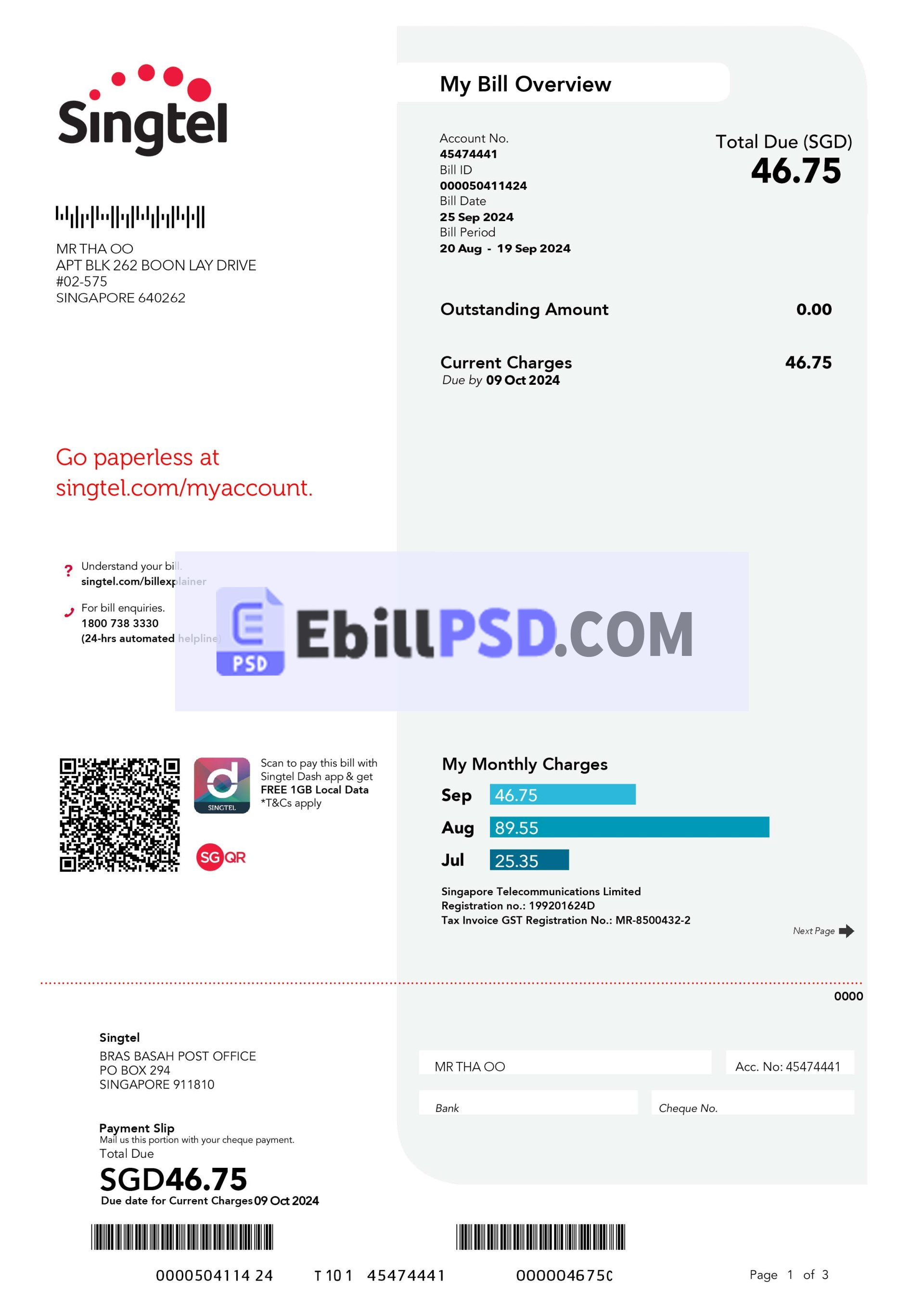 After downloading Singapore Singtel Utility Bill PSD Template, you can edit the following things: