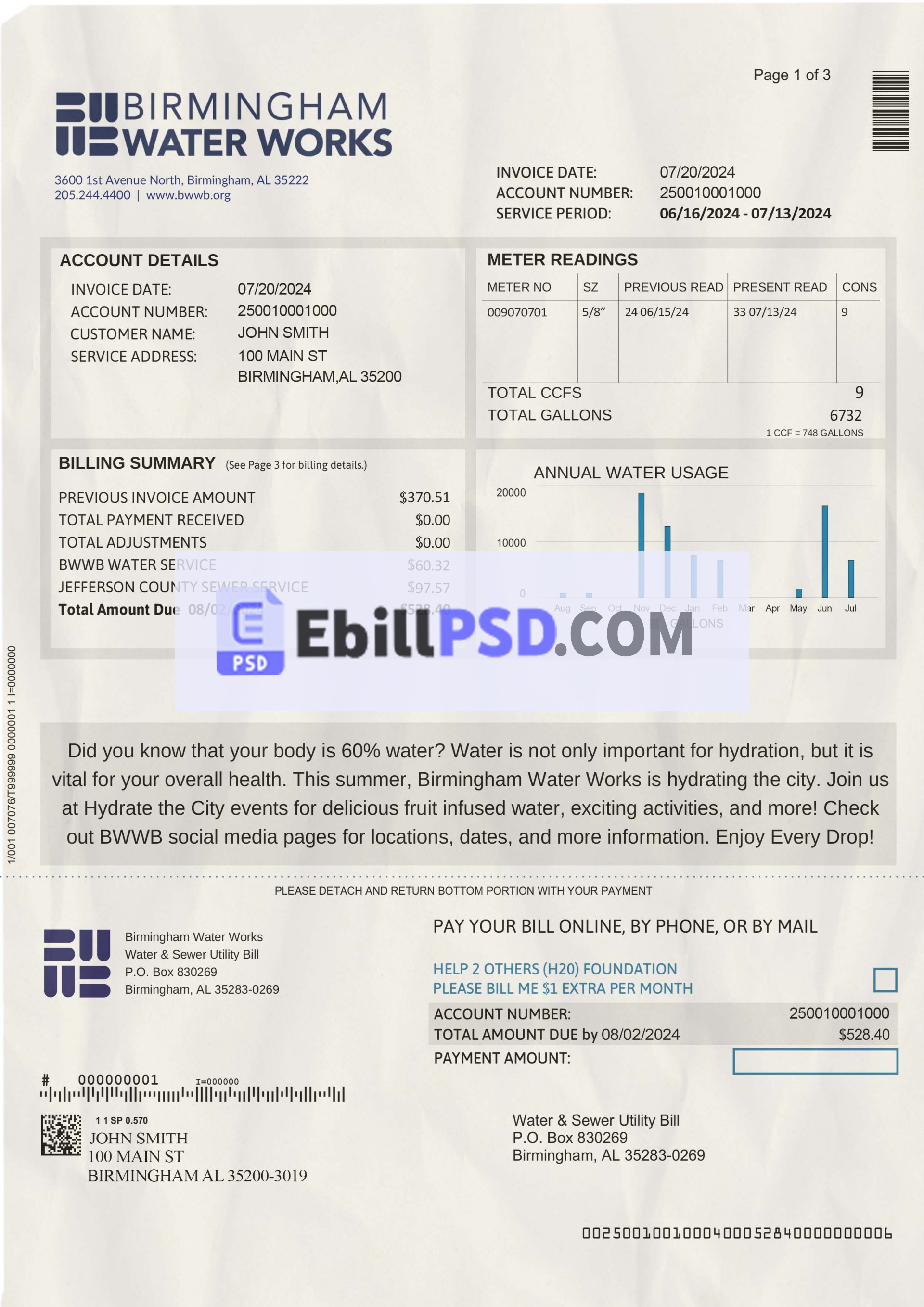 After downloading Birmingham Alabama BWWB Water Bill PSD Template, you can edit the following things: