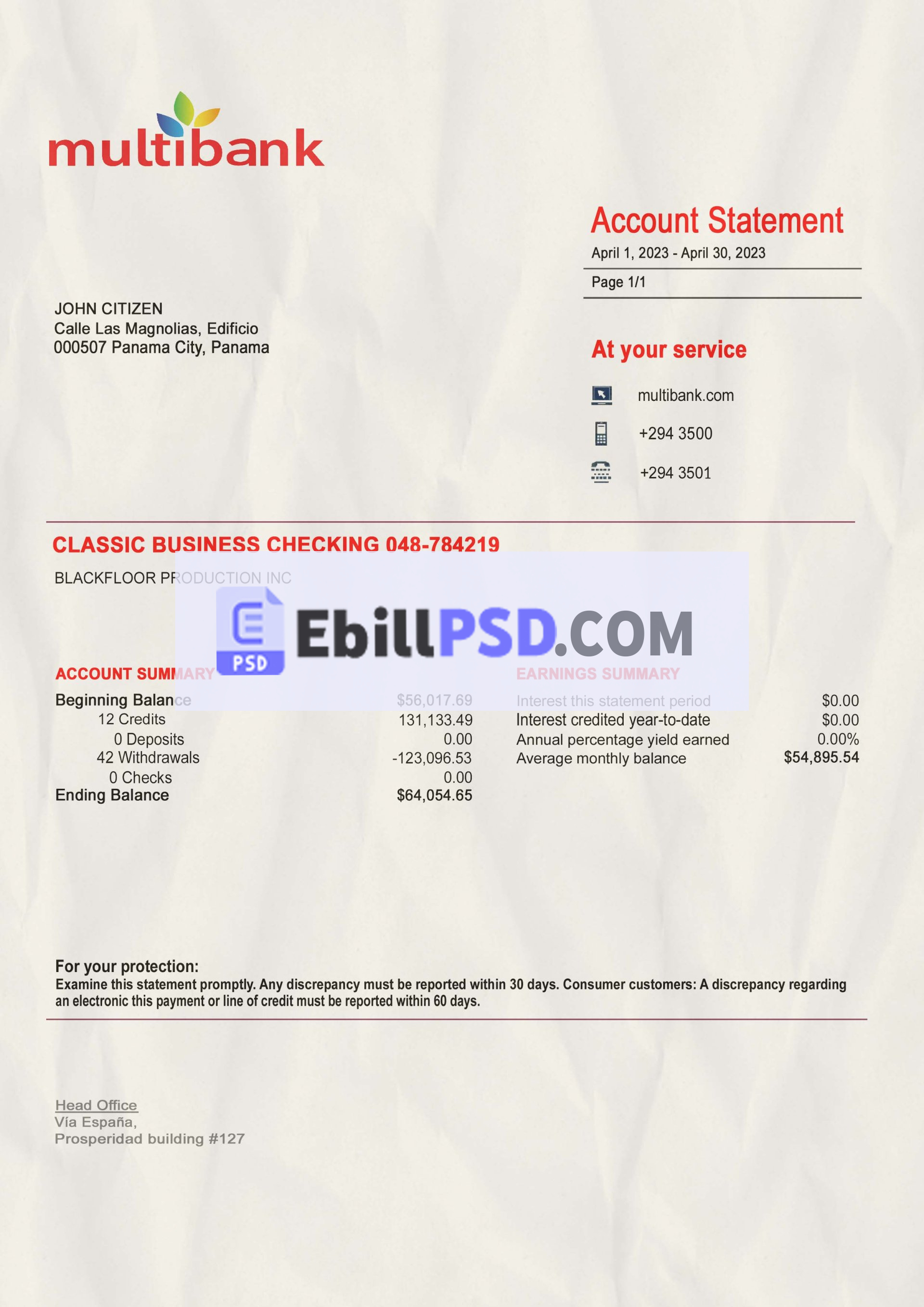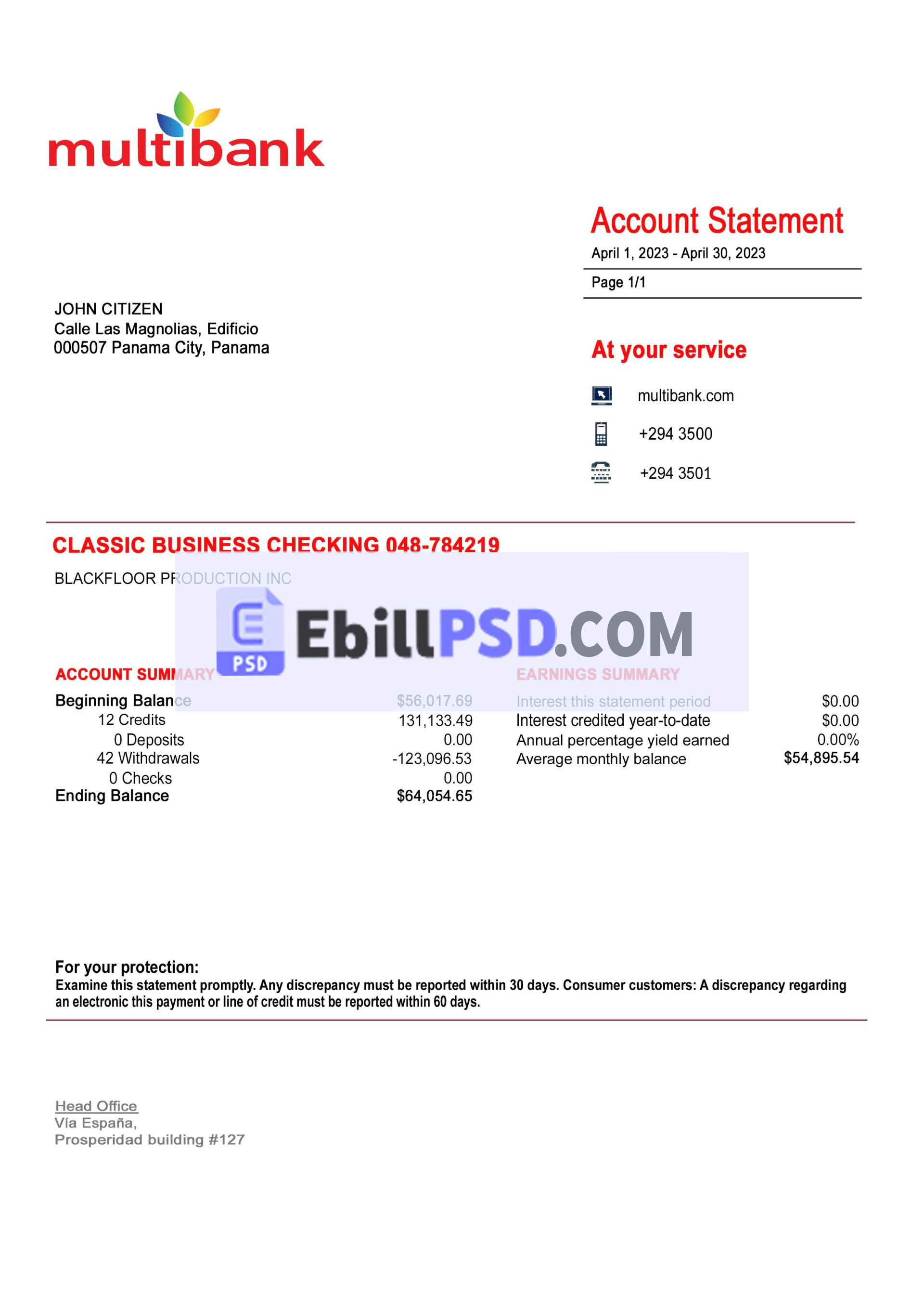 Panama MultiBank Statement PSD Template Download For a Cheap Price