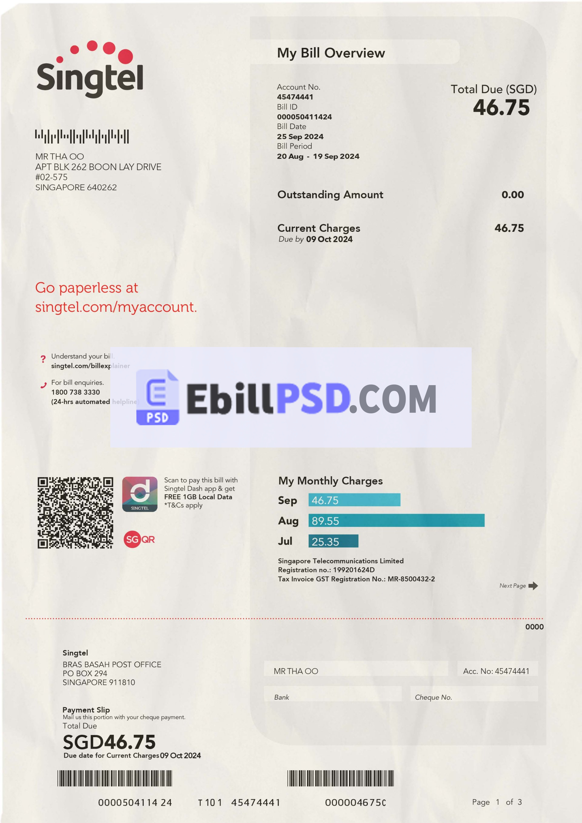 After downloading Singapore Singtel Utility Bill PSD Template, you can edit the following things: