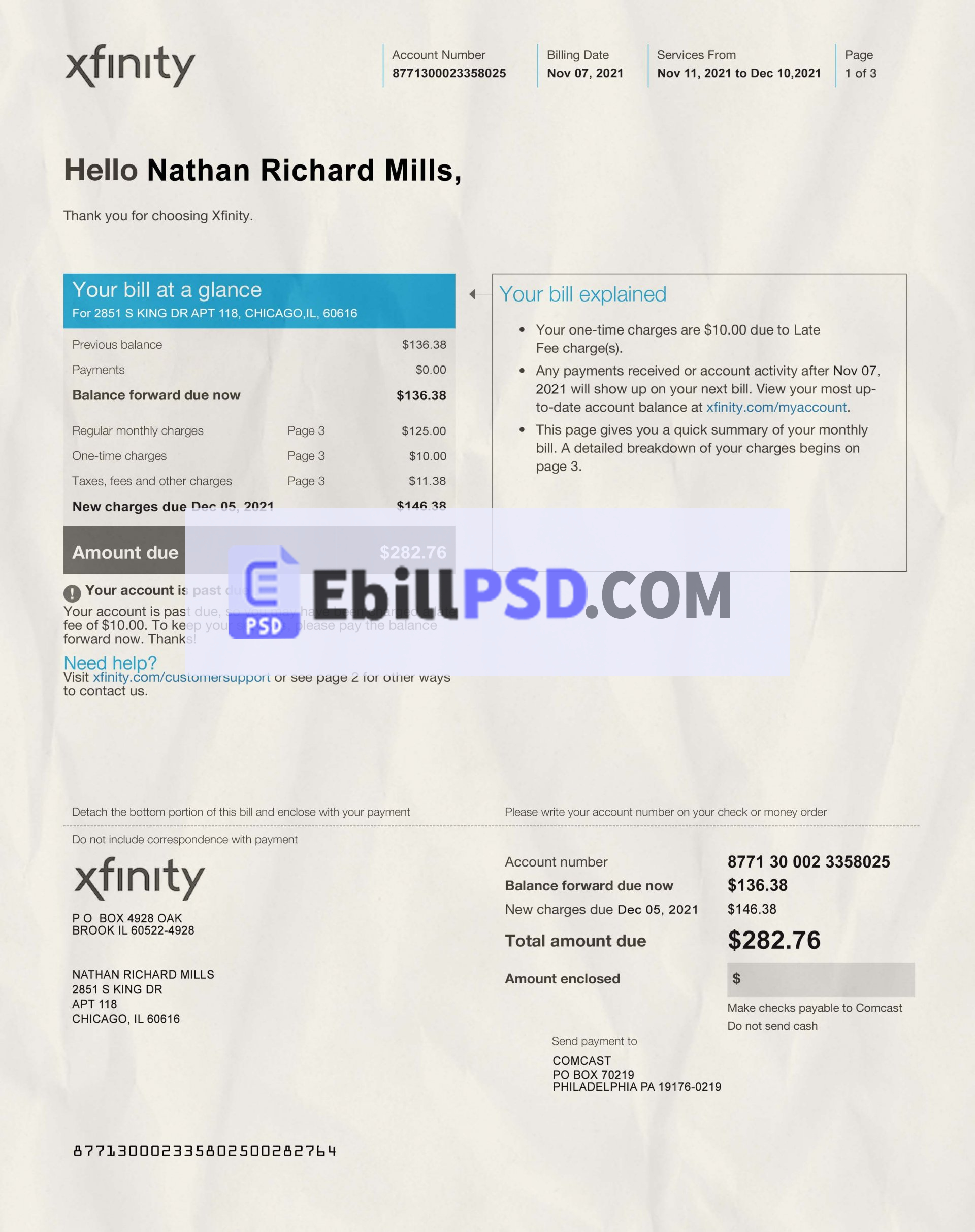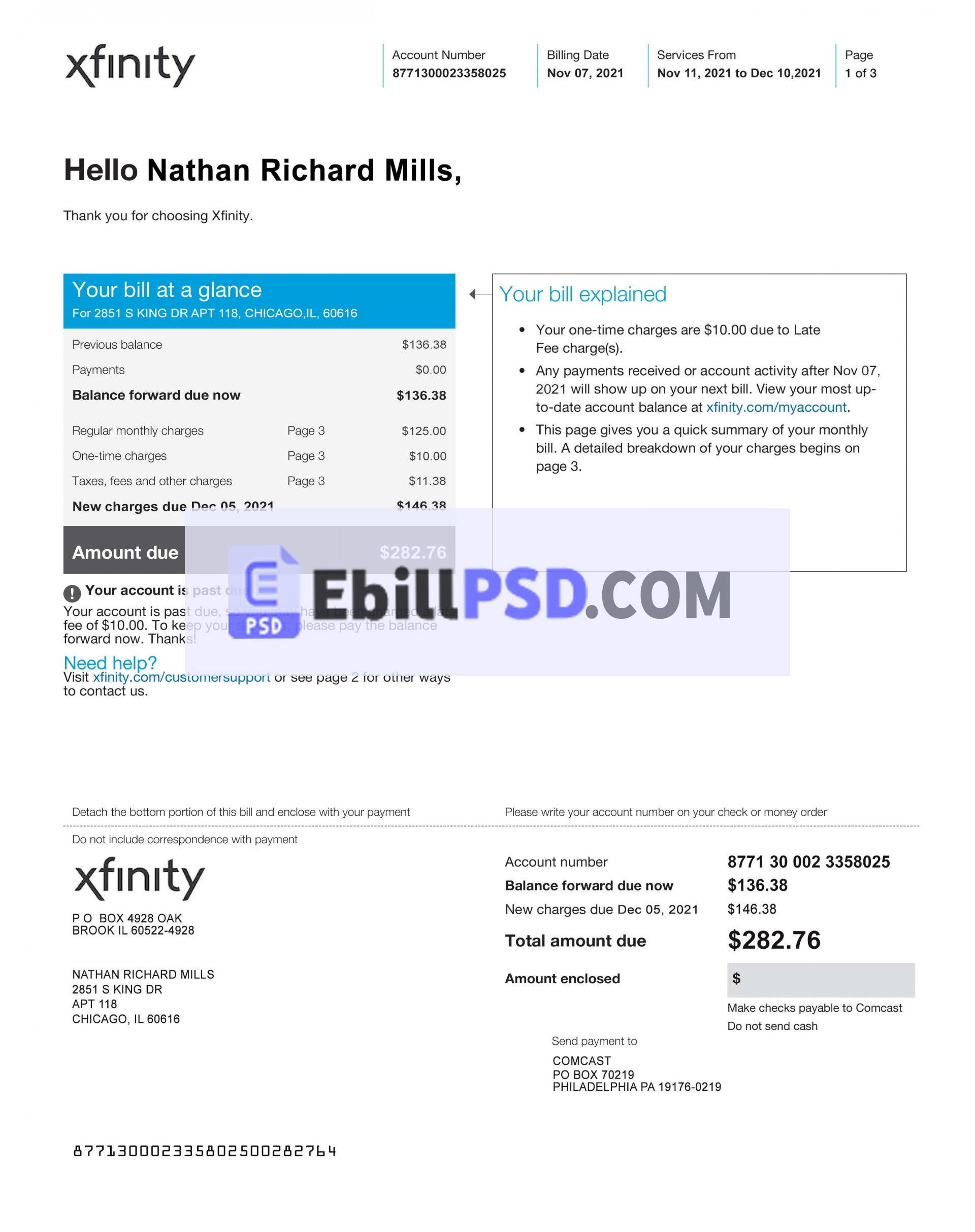 US Xfinity Utility Bill PSD Template 2022 Download For Cheap Price